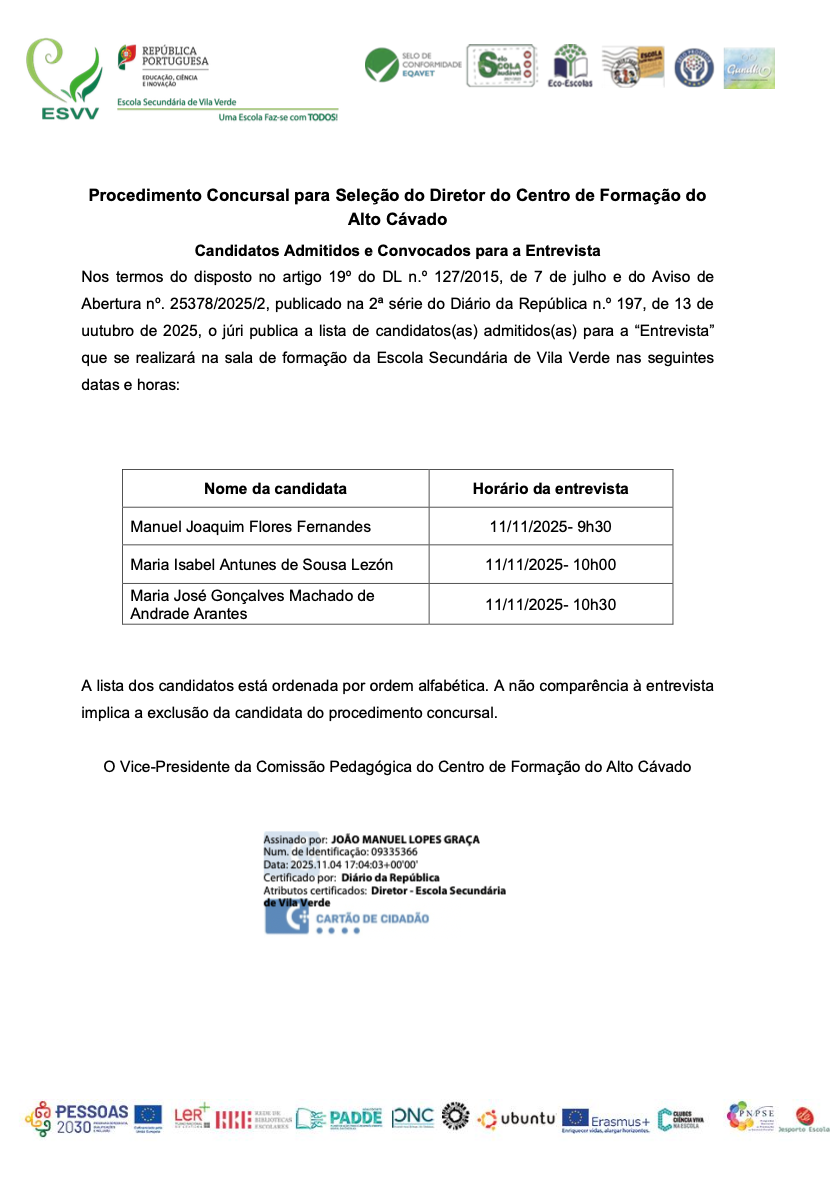 Procedimento Concursal para Seleção do Diretor do Centro de Formação do Alto Cávado