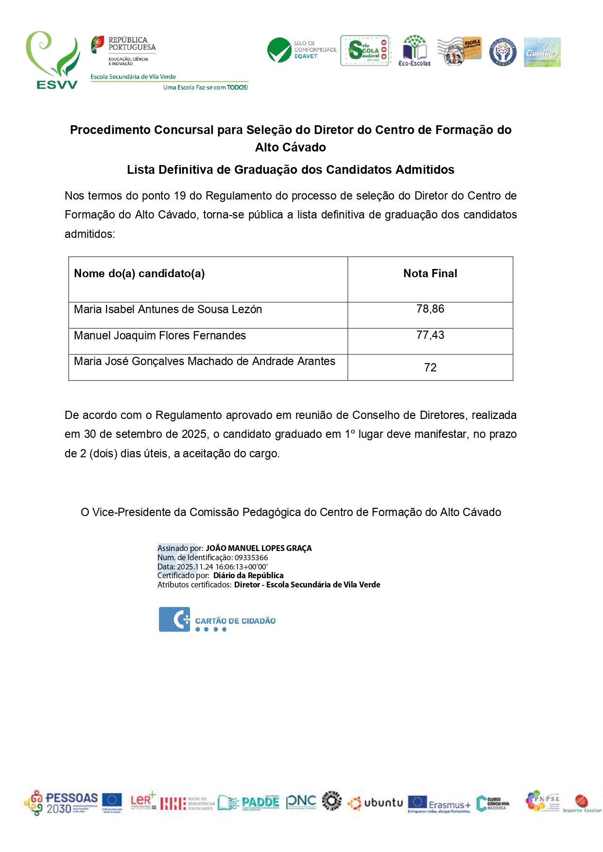 Procedimento Concursal para Seleção do Diretor do Centro de Formação do Alto Cávado