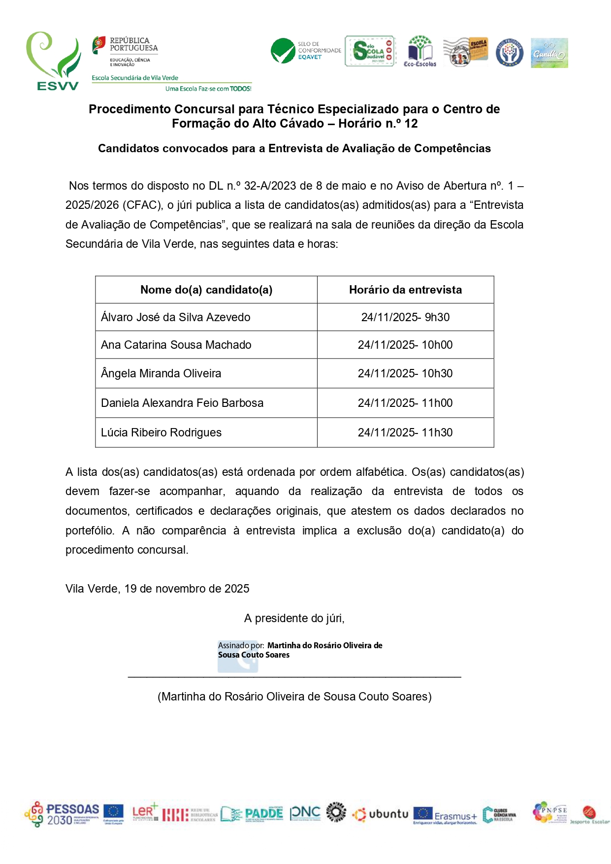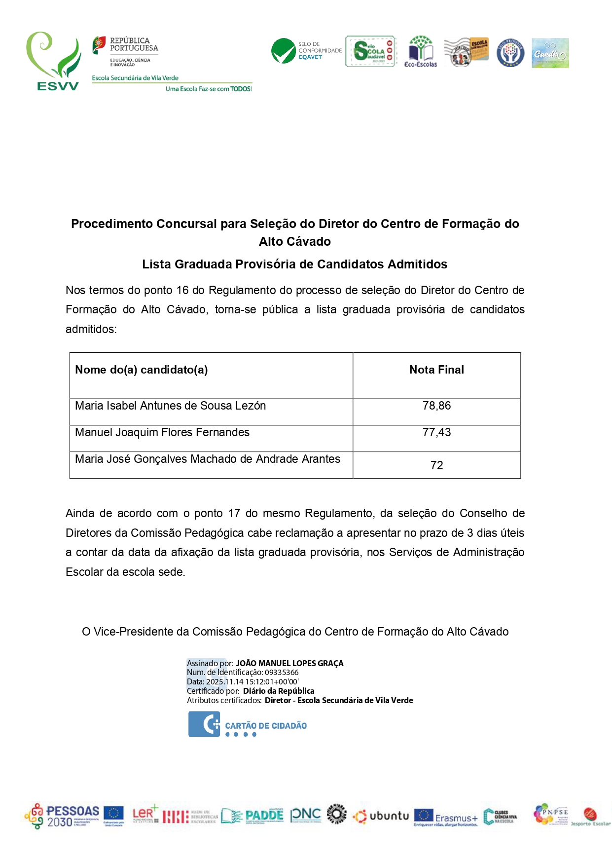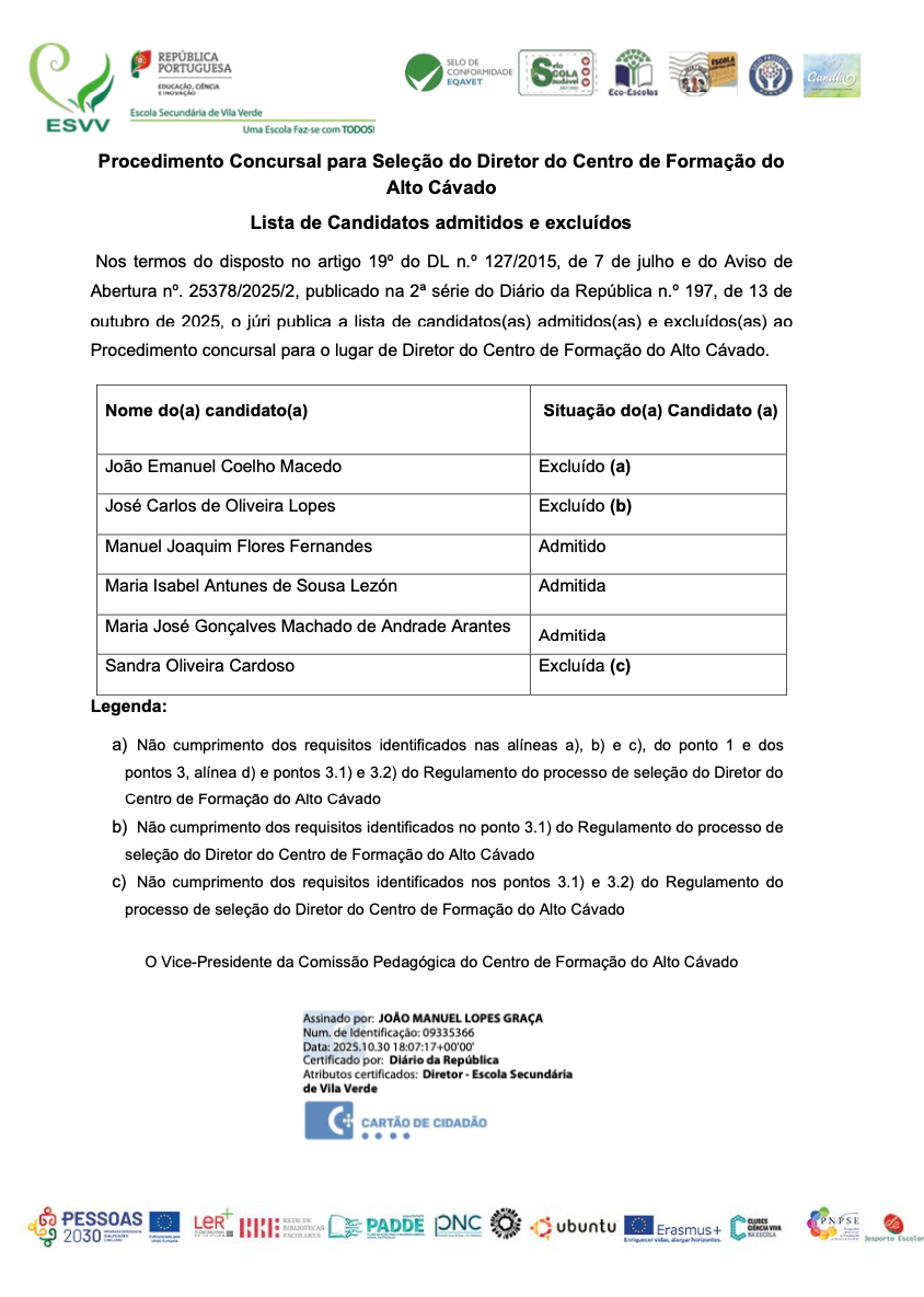 Procedimento Concursal para Seleção do Diretor do Centro de Formação do Alto Cávado